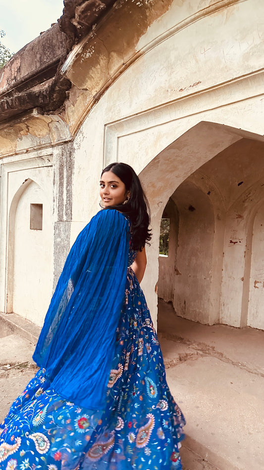 Navy Embroidered Fashion Forward Lehenga Skirt