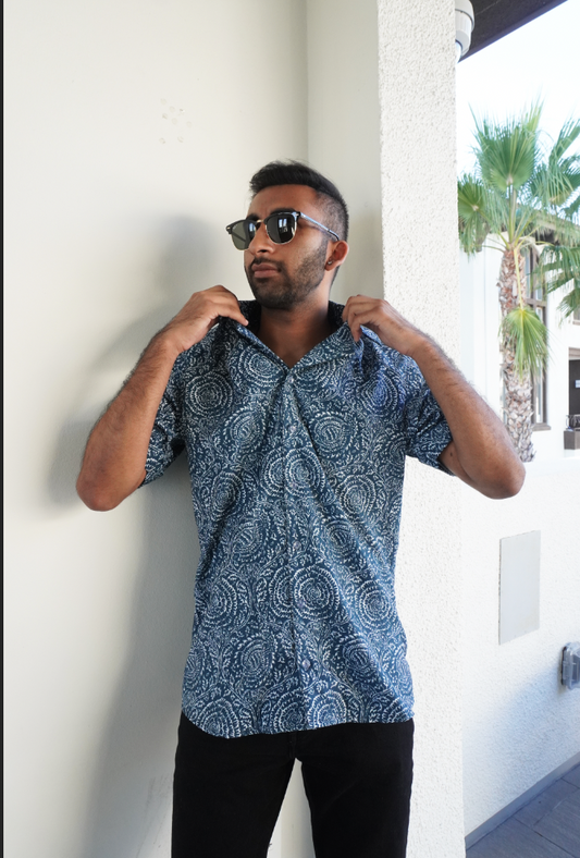 Men's Short Sleeve Bandhani Button Up