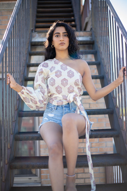 Vanilla Ice Hand Blocked One Shoulder Wrap top