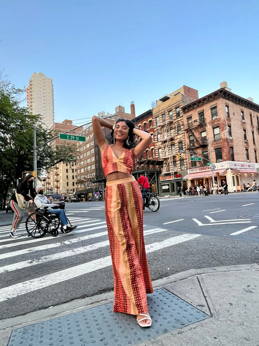 Red Floral Hand Block Printed Wide Leg Pant Set (Pants)